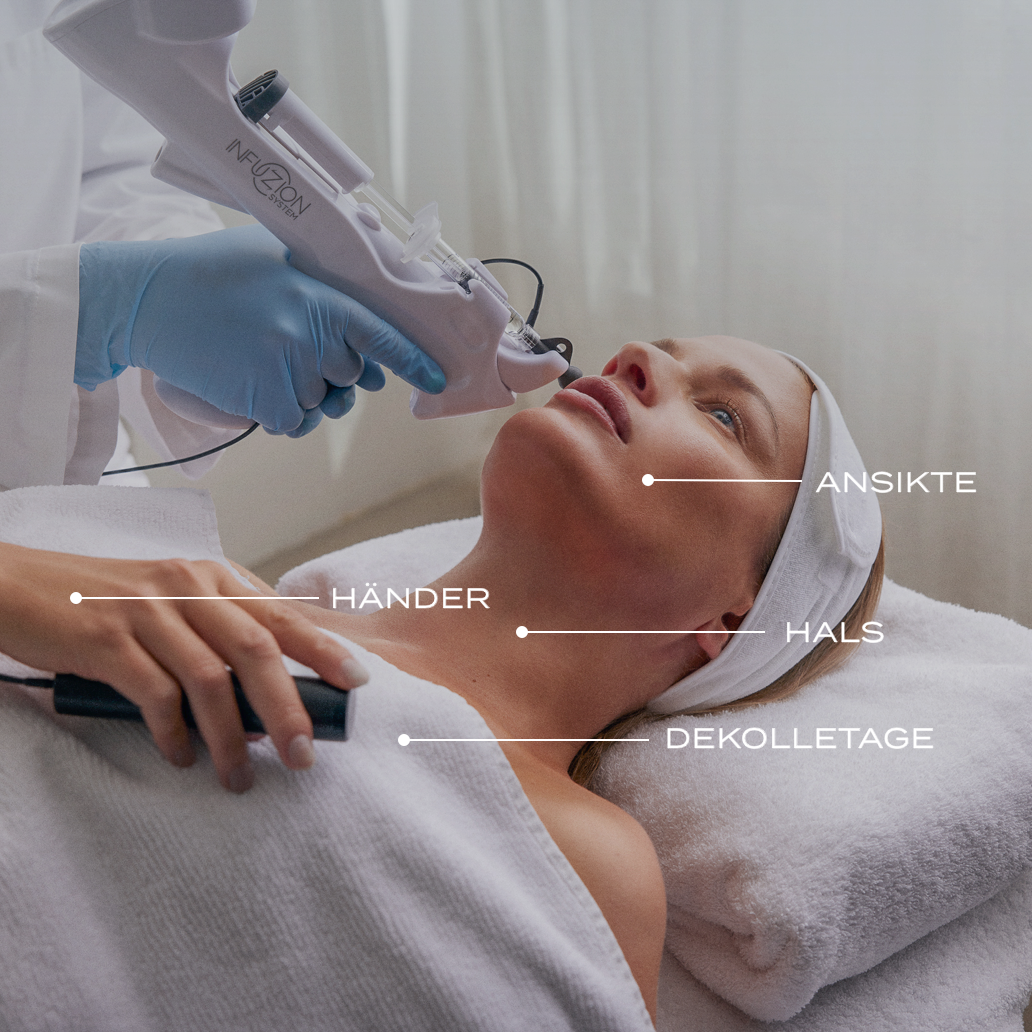 Met behulp van de bekroonde Infuzion® System-behandeling is er eindelijk een nieuwe manier om hyaluronzuur in de huid in te brengen. Infuzion System® is een wereldwijd unieke methode en een geregistreerd handelsmerk wat enorme populariteit geniet. Geen pijn, zwelling of blauwe plekken. Een veilige behandeling die maximaal 30 minuten duurt.
